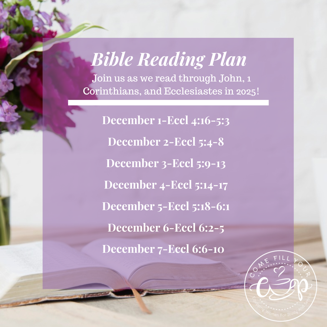 For the past several years, we have posted a daily Bible reading plan for each Monday of the year. This year, we are doing something special! Our dear friend, Carla Moore, has begun another fabulous Scripture Writing Challenge, and this year, it covers the books of John, 1 Corinthians, and Ecclesiastes. We know there are so many good studies and reading plans to participate in, so instead of muddying the waters with a different plan, we encourage all of our readers to participate in this journey through John, 1 Corinthians, and Ecclesiastes!