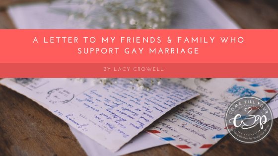 I pray that, as someone I love dearly, you will take the time to honestly and prayerfully consider what I have said. When we love people we want what is best for them, and unfortunately, what is best is not always what is easiest, or what we want at the moment. Scripture plainly teaches us that homosexuality is a sin, and in our world, if we are honest, we are seeing why. It is not healthy for a child to be raised without a mother and a father, and homosexuality makes an individual much more susceptible to physical and emotional trauma. Please do not call me a hater or a homophobe because I oppose gay marriage, but understand that I hold the convictions I do because I love families and I love souls, and I would rather see those who struggle with homosexuality in Heaven for all eternity than given “equality” here and now. What about you?