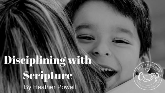 In scripture, discipline is a theme that recurs both in the Old and New Testament. There are many verses we can use as tools, so that when we discipline we act in a way that will bring glory to God. 1 Corinthians 10:31 reminds us “whatever you do, do all to the glory of God.” I have to say… I fail at this sometimes. I can easily get upset, get frustrated, and instead of disciplining my children and correcting them, turn to them in a fit of rage. Unfortunately when this happens, I’m not letting His light shine through me. James 1:19, 20 reads “This you know, my beloved brethren. But everyone must be quick to hear, slow to speak and slow to anger; for the anger of man does not achieve the righteousness of God.” (Emphasis mine.) We need to constantly be thinking of the example we are setting. In Ephesians 6:4, Paul tells us “Fathers, do not provoke your children to anger, but bring them up in the discipline and instruction of the Lord.” If we get upset easily, how can we expect our children not to? As I write this I have twinges of guilt, because I know I’m guilty of not always setting the best example, especially when I get upset. I also want to clarify that it’s not wrong or going against scriptures to get upset, it’s about how we control ourselves when we do get upset.